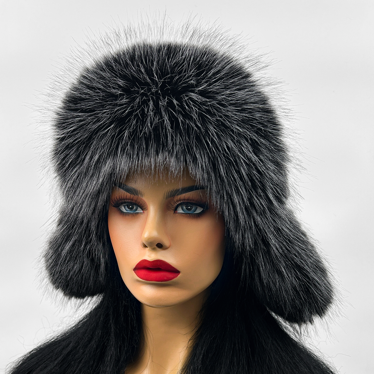 Елегантна жіноча вушанка з м'якого штучного хутра норки з пухнастим оздобленням під чорнобурку. Тепла, стильна та комфортна — ідеально захищає від морозу та вітру. Універсальний чорний колір зі сріблястим хутром підкреслює жіночність і підходить до будь-якого зимового образу.